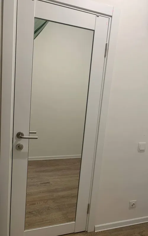 Зеркало имеет размеры 1745*635 мм , что позволяет установить его на большинство входных дверей. Отверстие под глазок составляет 20 мм, что обеспечивает хороший обзор и безопасность.